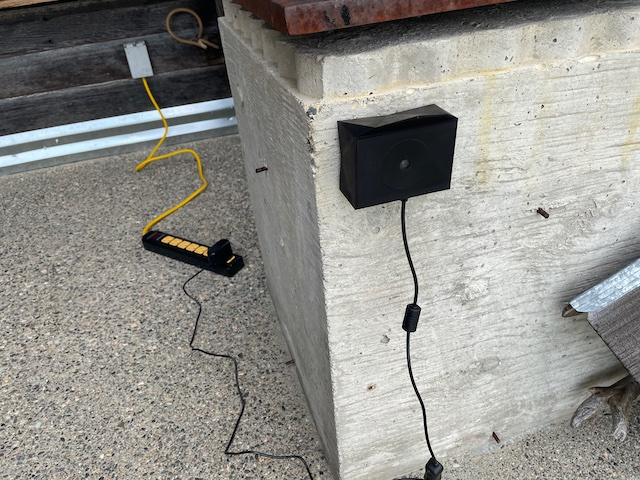 Camera unit deployed outside. Coming later: solar panel and mounting bracket kit.