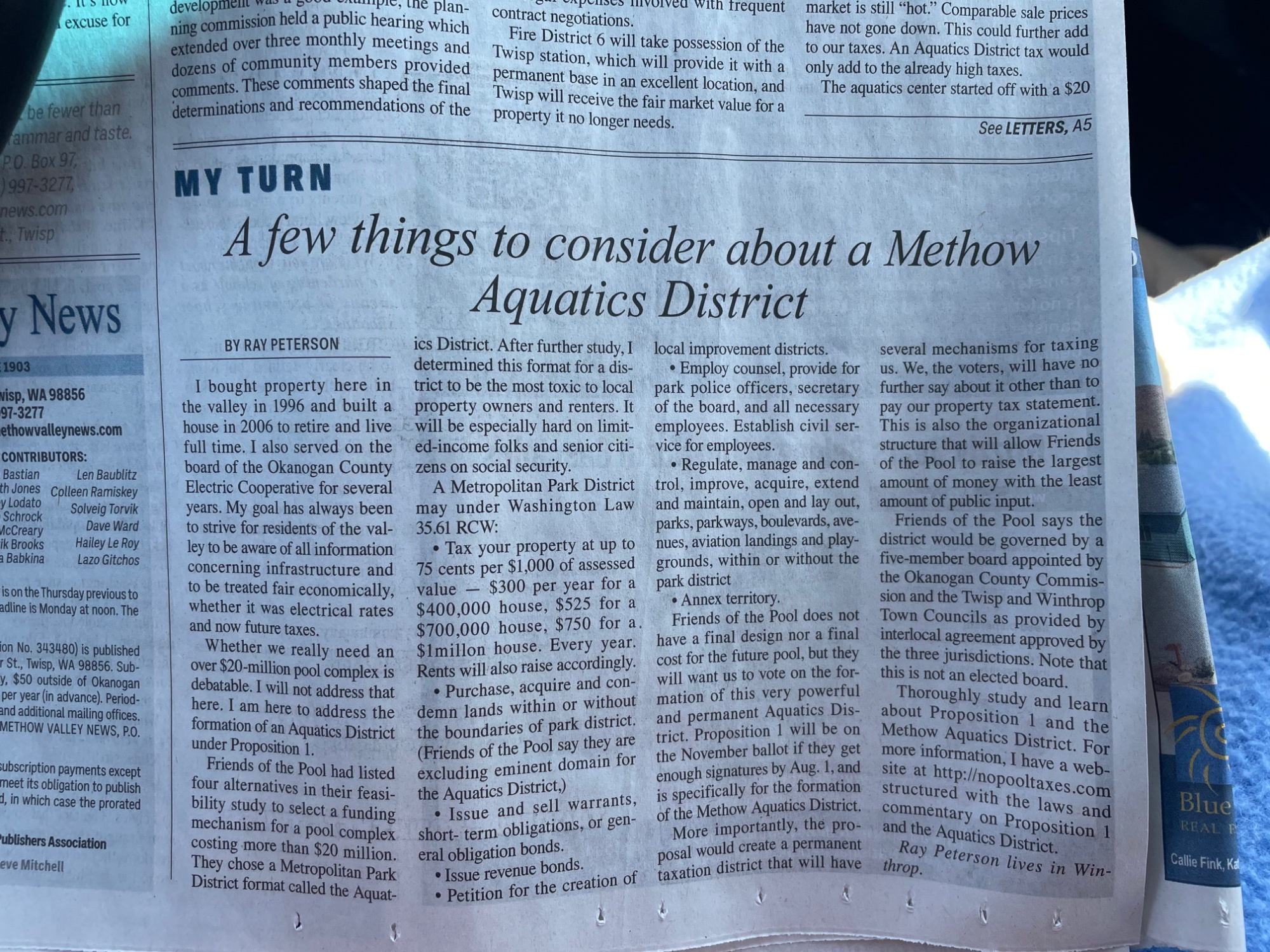 Part of participating in local democracy is keeping yourself informed about what’s going on around you. Around here the MVNews is maybe the best way to that. Besides which…. supporting local, independent, journalism - especially PRINT journalism - is a good thing to do! (My younger sister was a long time editor of a weekly paper in a Twisp-sized town in Colorado….my bias)