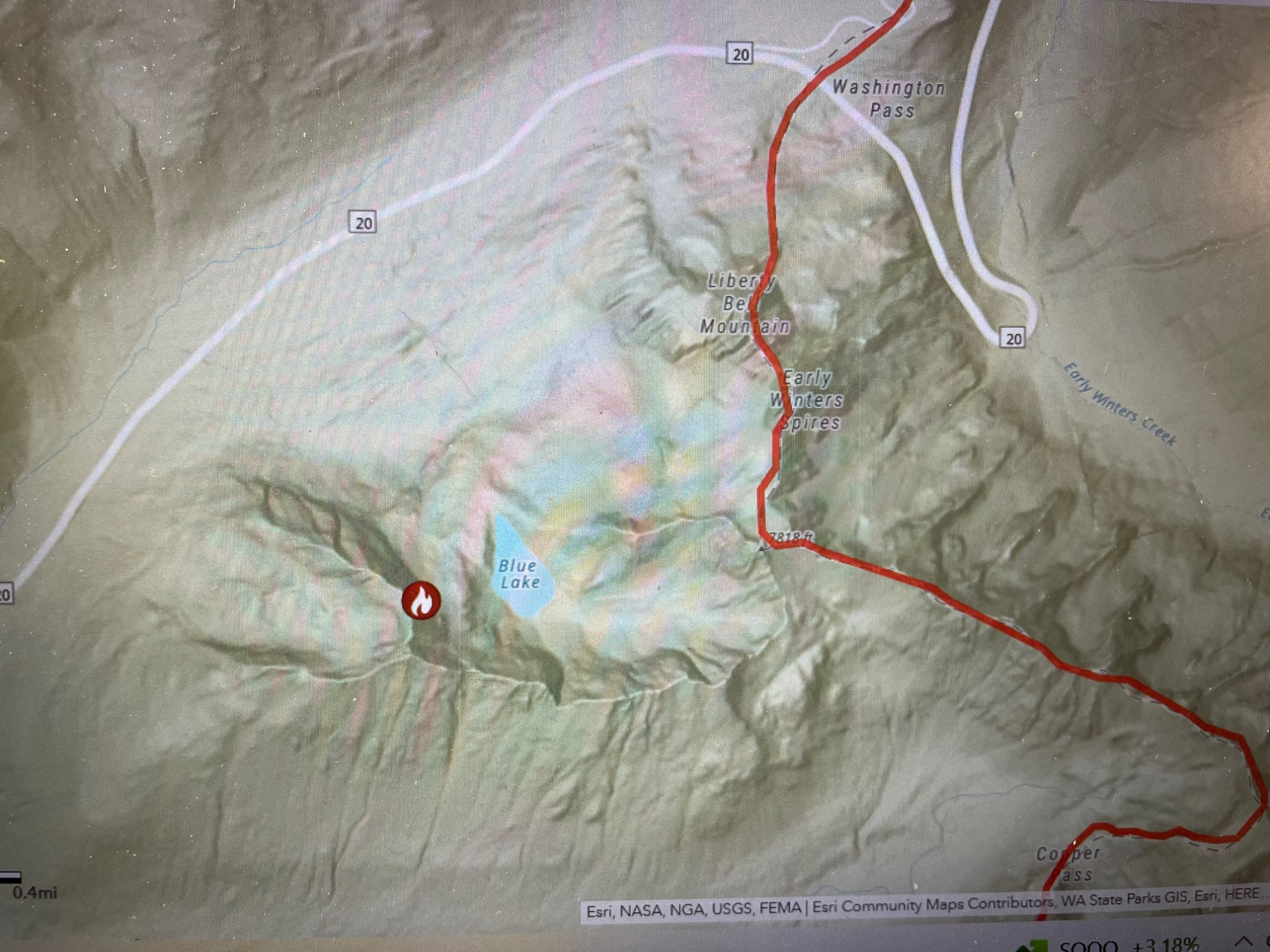 "The Blue Lake Fire is burning several miles southwest of Washington Pass on the Methow Valley Ranger District of the Okanogan-Wenatchee National Forest.