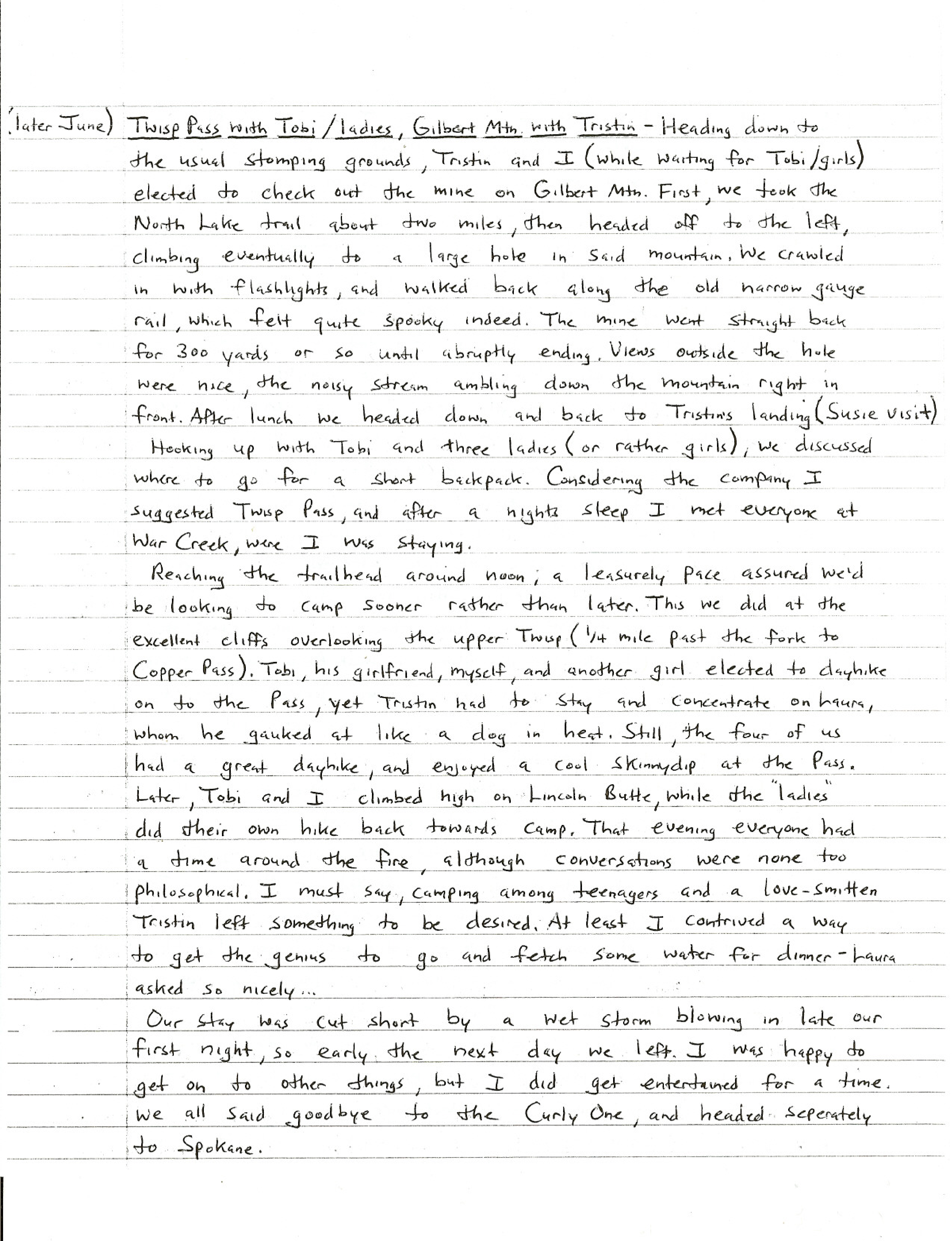 BAK COUNTRY MINES by Harvey Austin This is the diary Harvey kept as he worked the mines at the end of Twisp River Road.