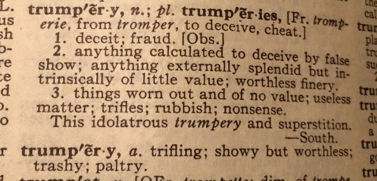 The word “trumpery” appeared in the 15th century with the meanings “deceit” or “fraud”.