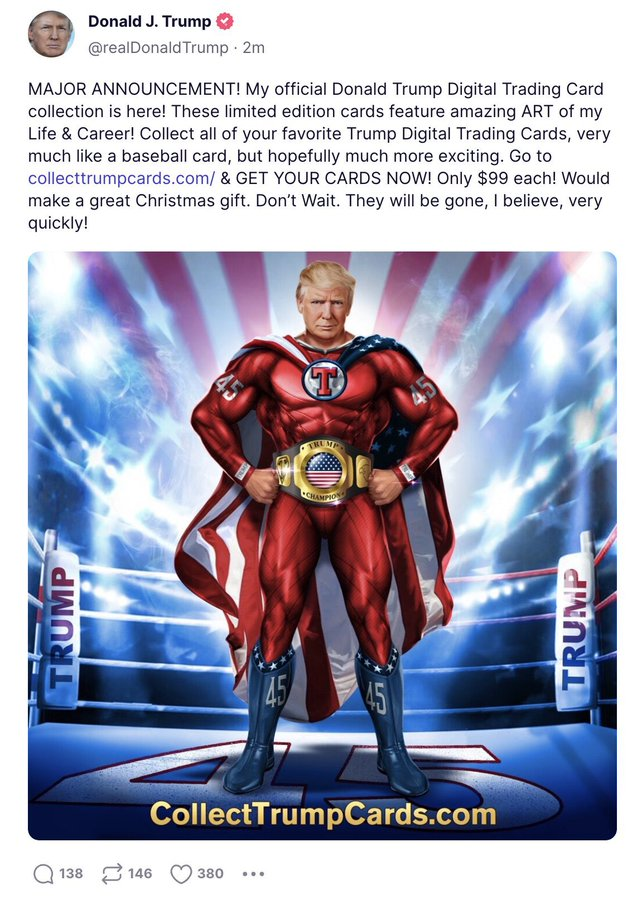 Now, the orange man is selling himself on trading cards. Only 99$ each!