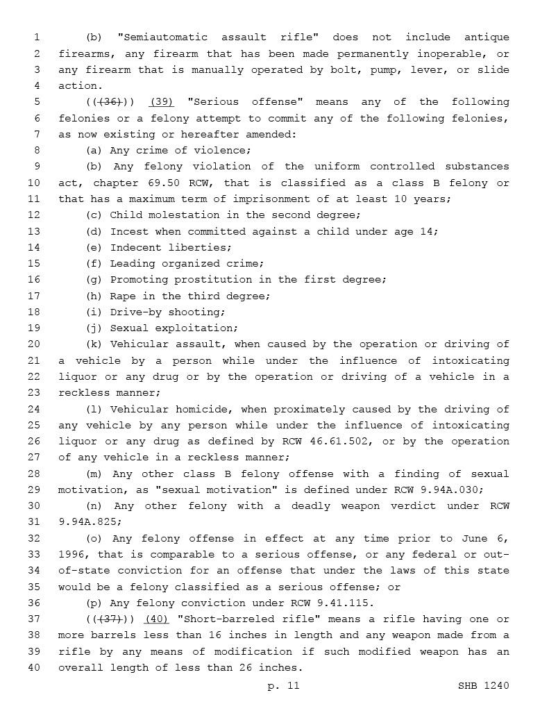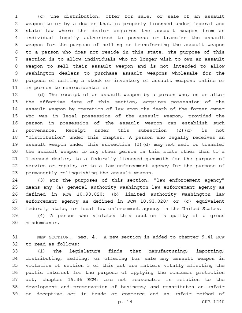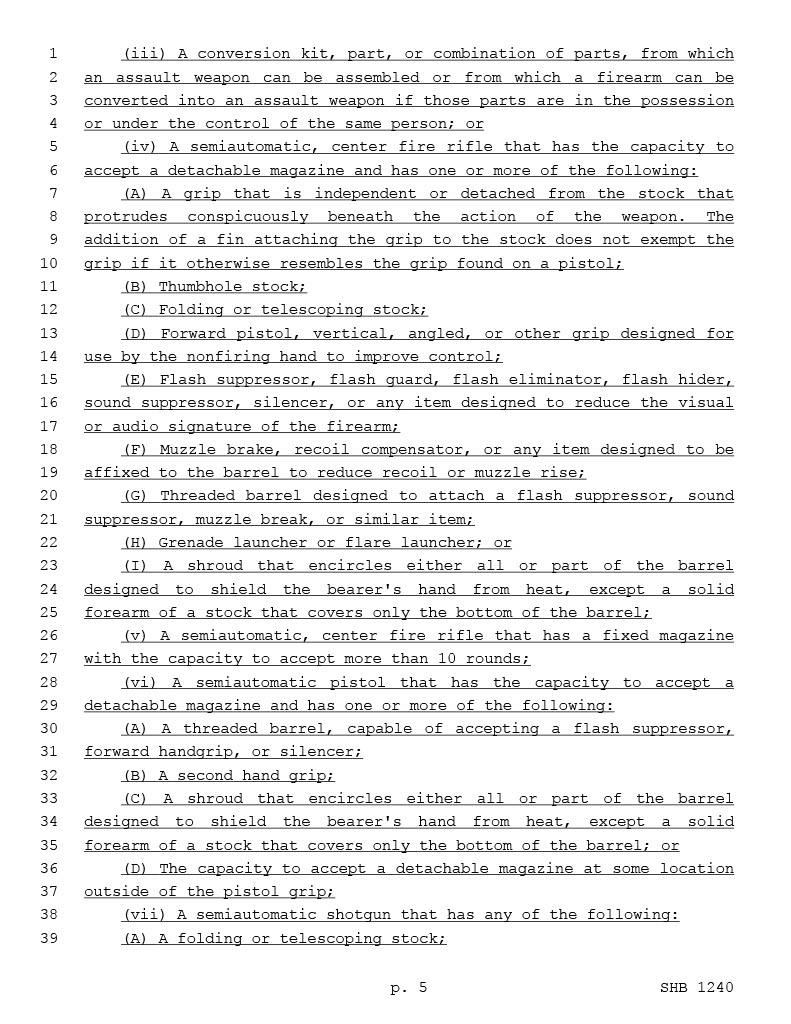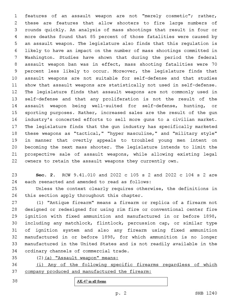 There is no such thing as an ‘assault weapon’, assault is an action so any item used in the commission of an ‘assault’ is an ‘assault weapon’. These are just guns you don’t like (because you don’t know or understand guns) and think are scary. This will fail in court because it violates Wa St. constitution!