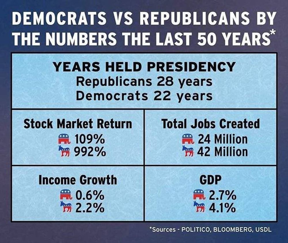Some of the things that make this more complicated is that if you consider a 40-year time span and just look at Congress there were a lot more Democrats than Republicans. I think if you considered just the last 20 years or so or considered the executive branch it would also look a lot different.