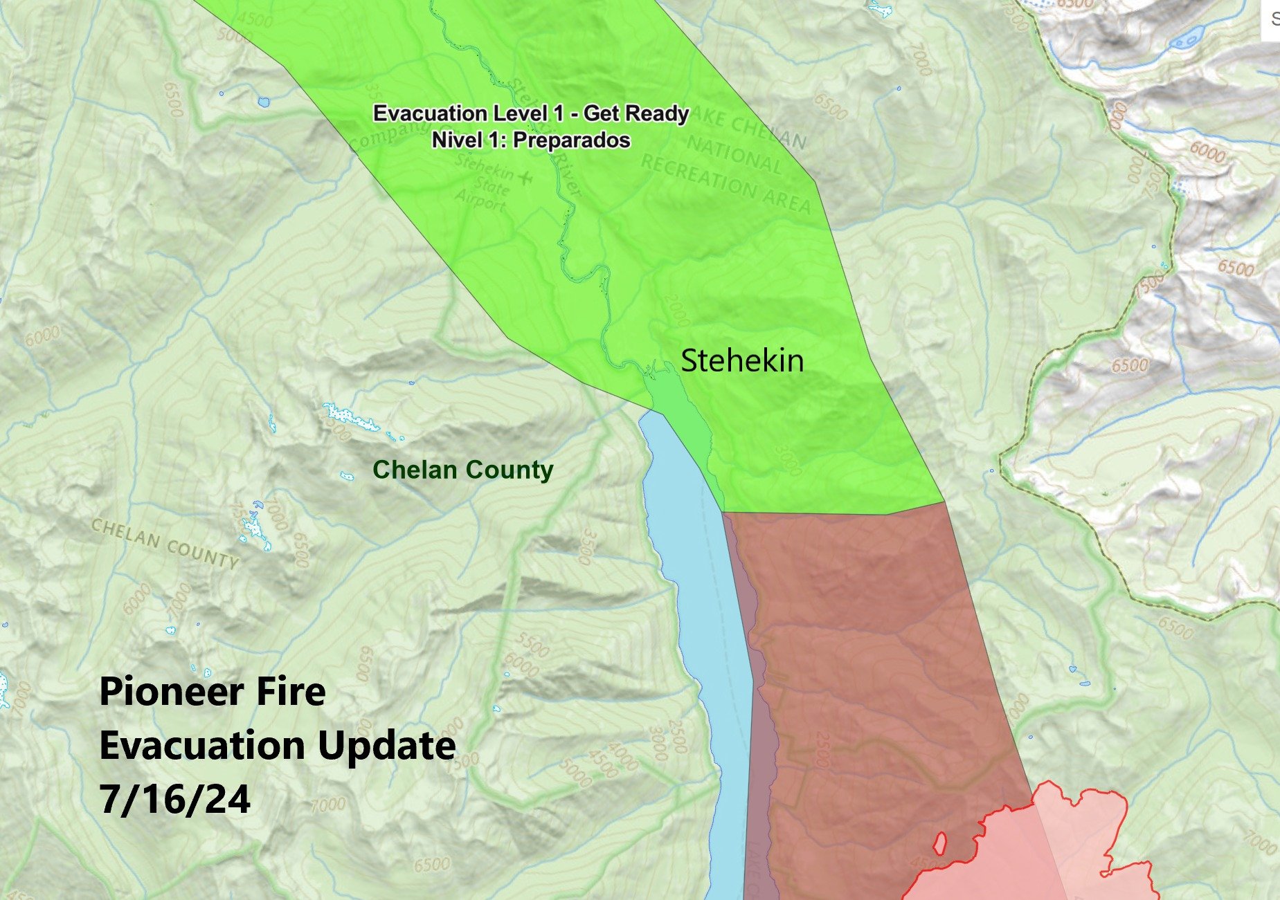 Evacuations: The Chelan County Sheriff extended the level 3 evacuation up lake to Hazard Creek along Lake Chelan, now encompassing Safety Harbor to Hazard Creek. Level 1, 2 and 3 evacuation levels remain in effect around the Pioneer Fire. Please visit https://t.ly/QoH9w for more information.