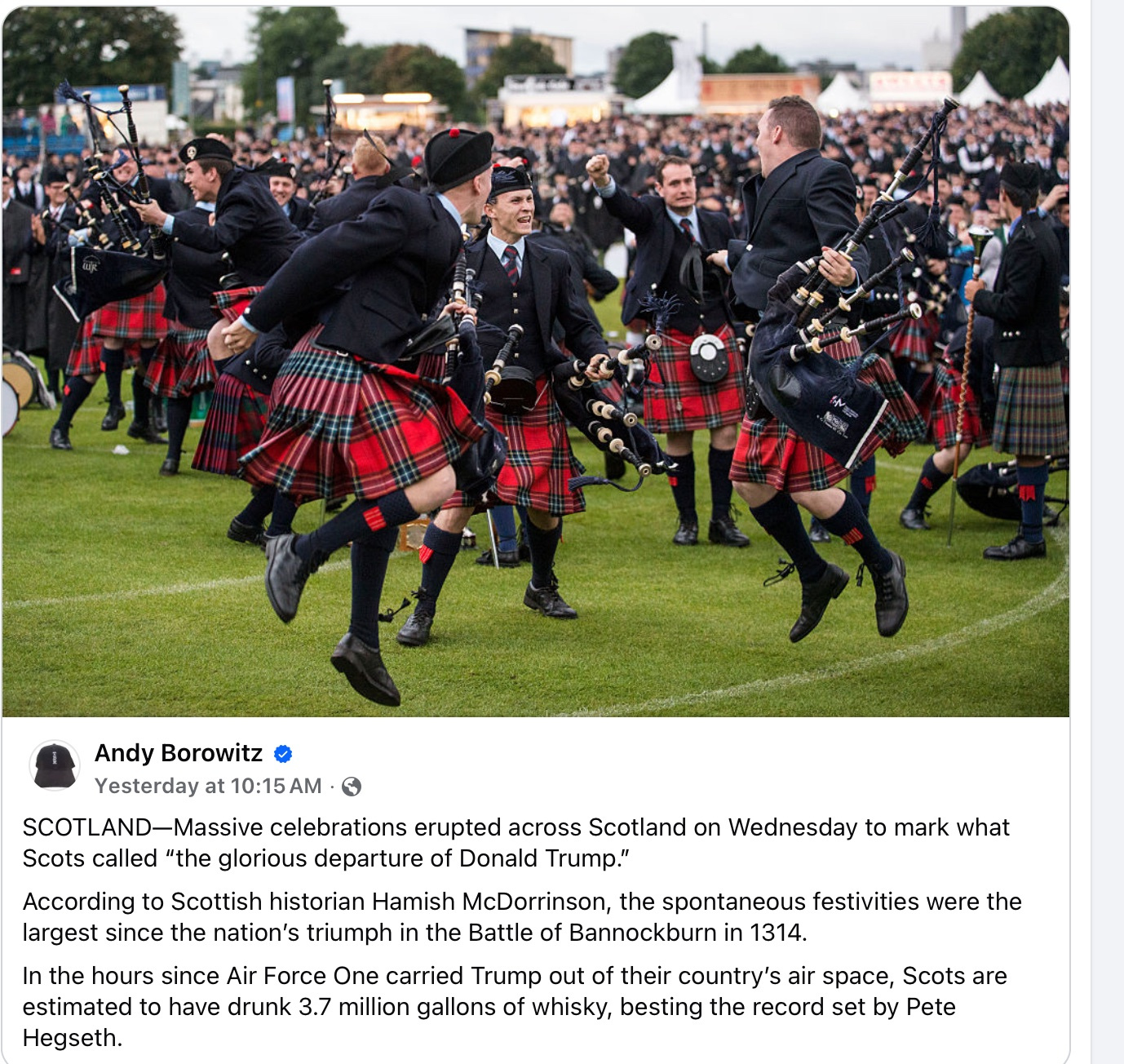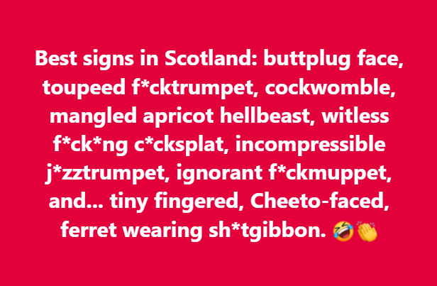 I spent quite a lot of time in Scotland. FELON tiny donnie is LOATHED there.