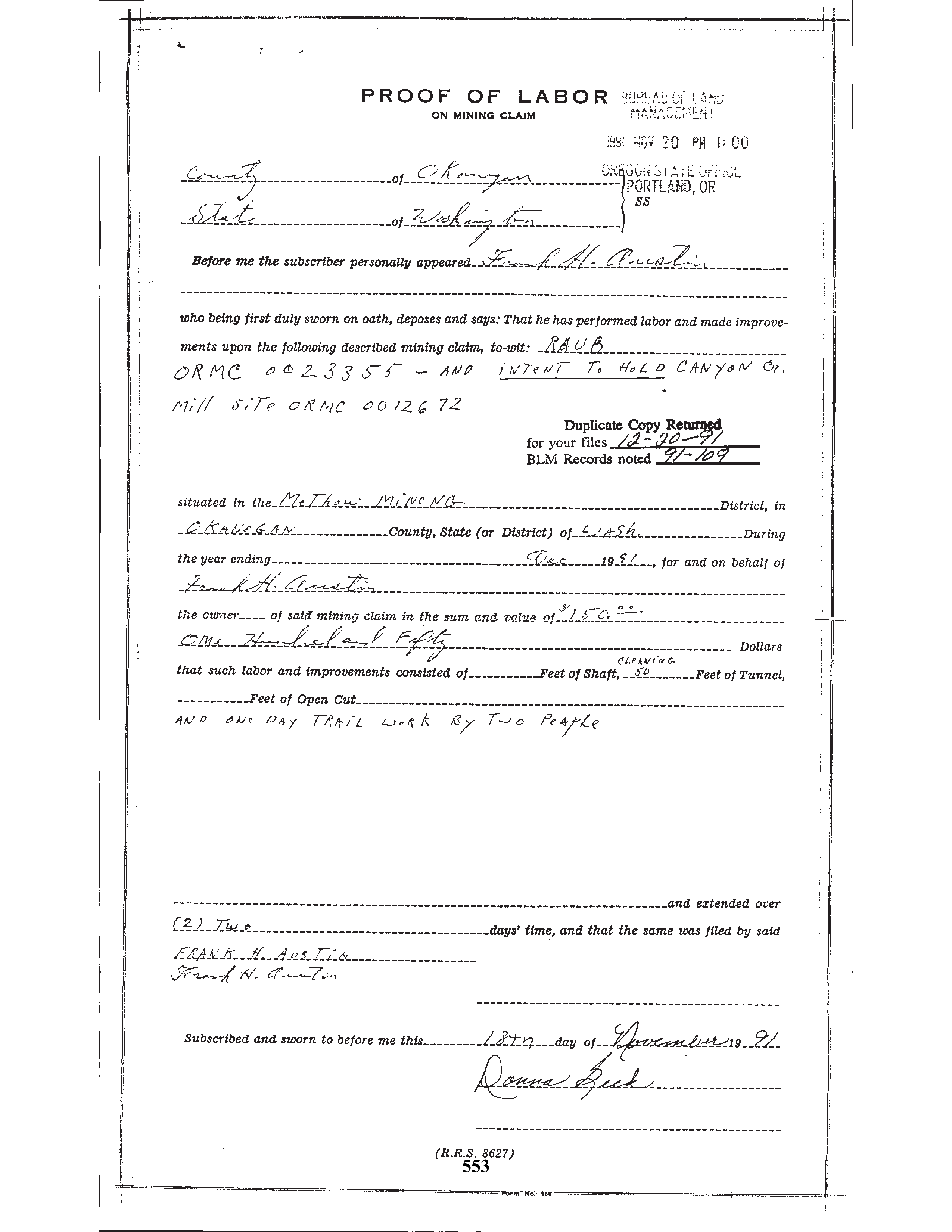TREASURE map FRANK AUSTIN gave me his mining papers TUNNEL map Wolverine Plan of operation QUIT CLAIM DEED Twisp River Org --My Active Mineral Claim