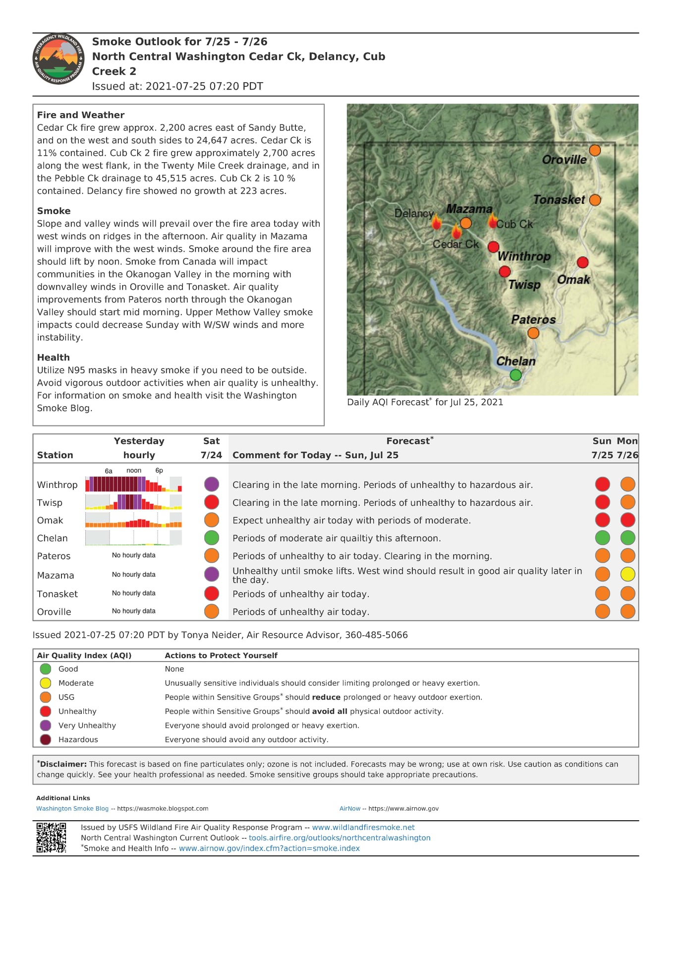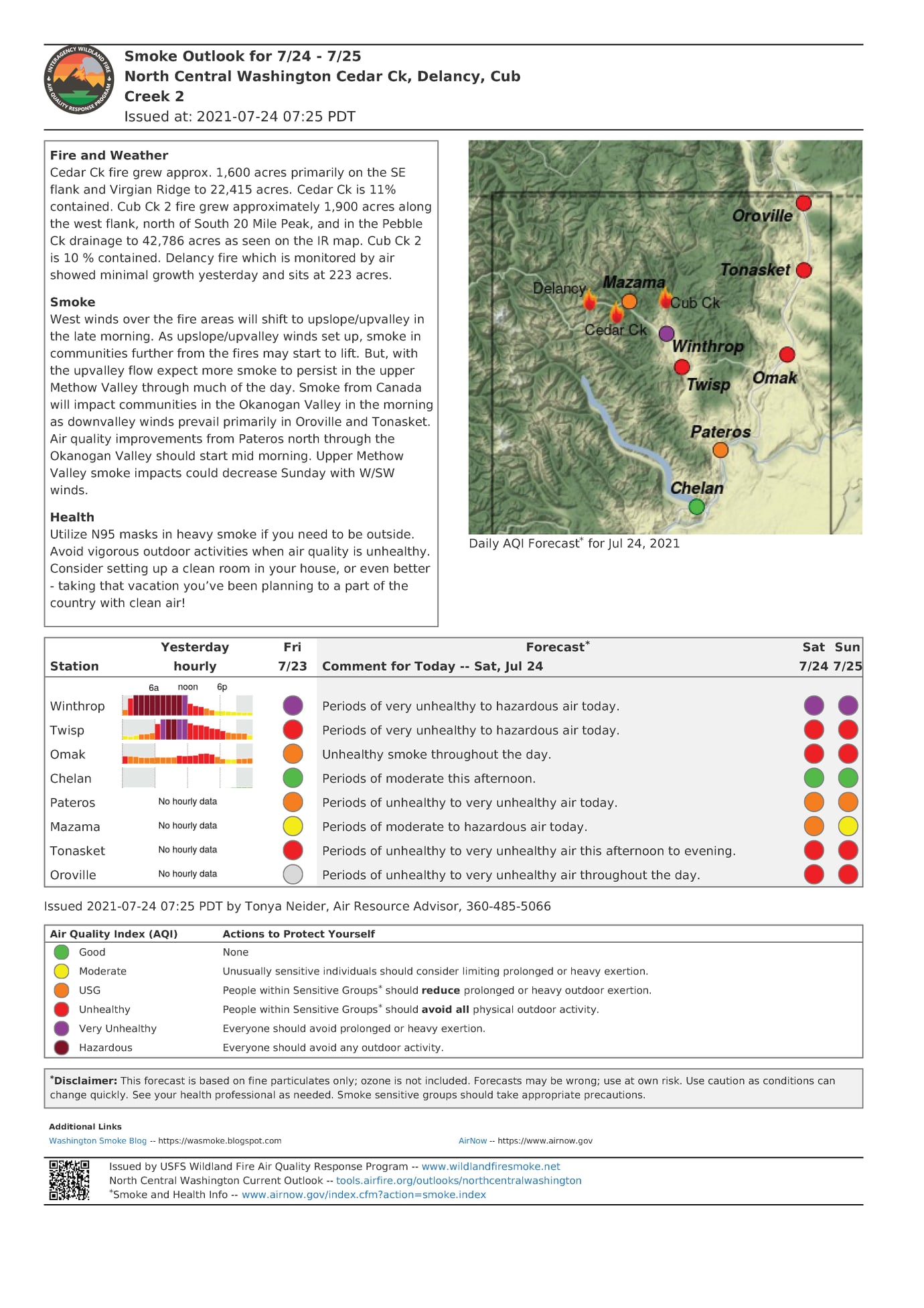 Smoke Blog: https://wasmoke.blogspot.com/ Email: 2021.cubcreek2@firenet.gov Highway Information: https://www.wsdot.com/traffic/traffical ... fault.aspx Evacuations: https://www.okanogancounty.org/.../emer ... /index.php