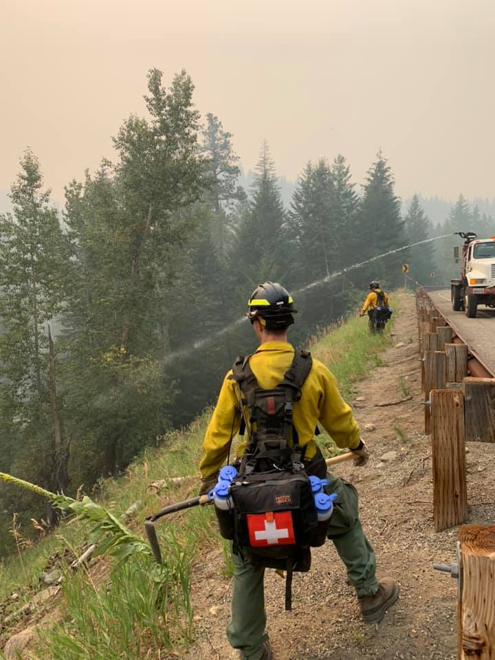 Afternoon update of fire activity: Additional equipment arrived today and is being sent to work in the Thompson Ridge area to improve the fire line. Crews are currently working on extinguishing a spot fire that crossed over the fireline (not the highway) near Early Winters Creek. Air operations have been a challenge today with smoke conditions and visibility. Aircraft will resume operations as soon as it is safe to do so.