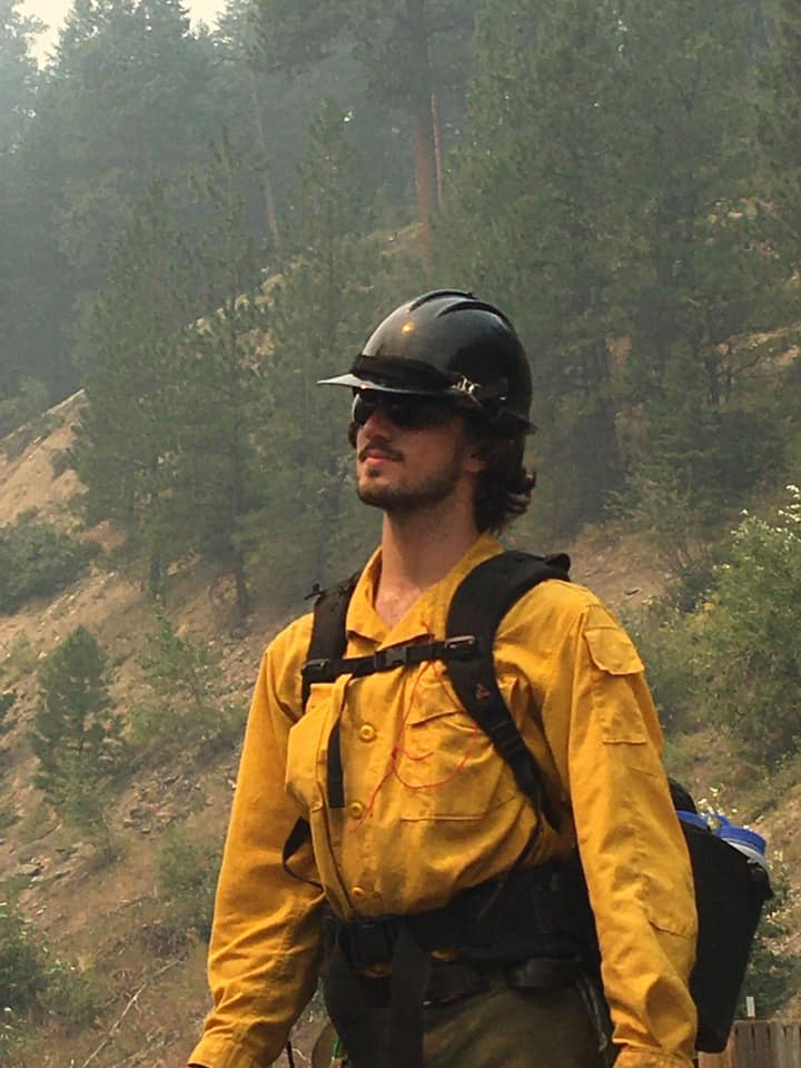You can see in the background how the fire is backing down the slope on the northeast section of the fire. Firefighters are monitoring this fire activity as they continue to improve fireline between the fire and structures and mop up areas where fire has met the line.