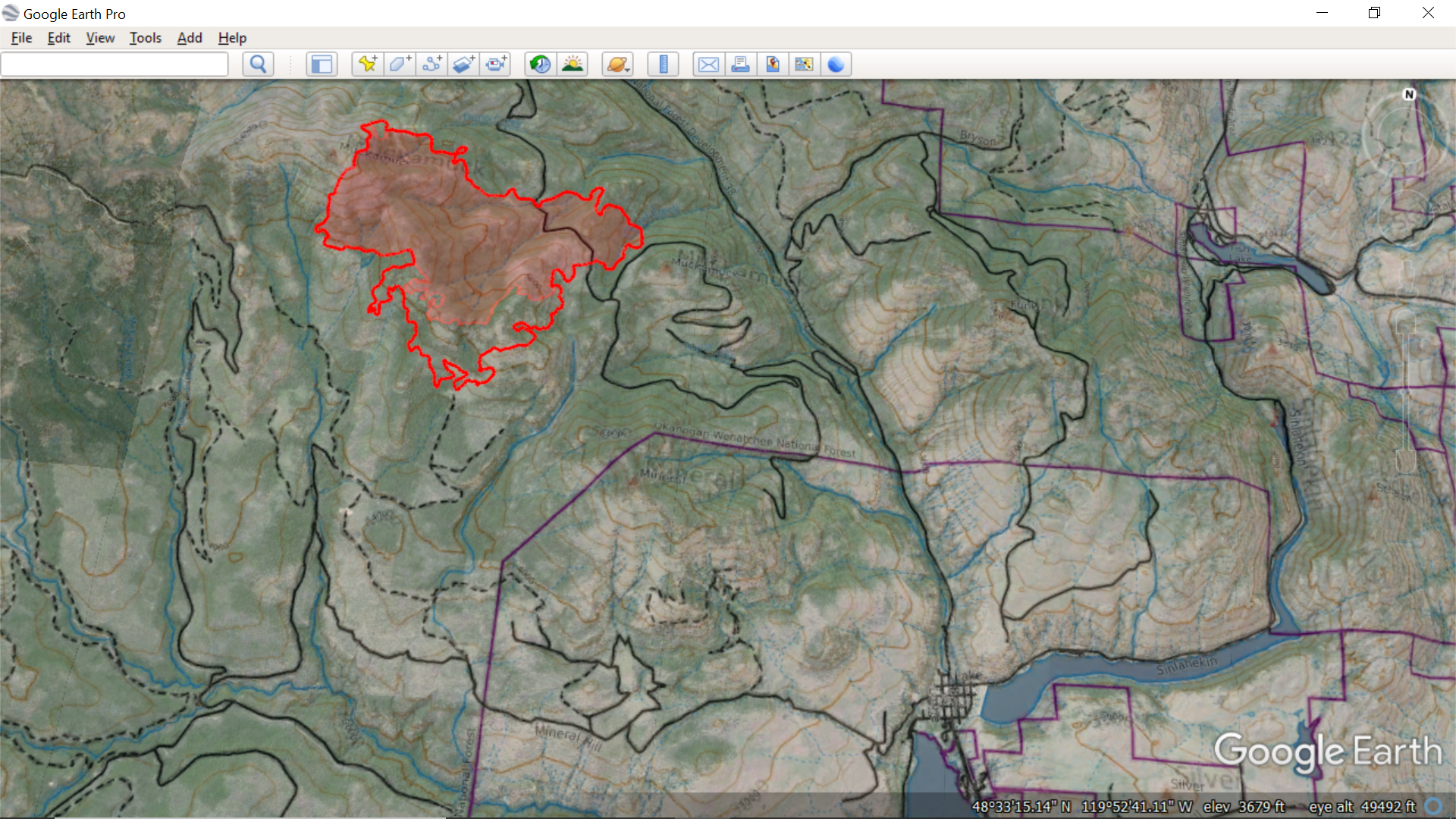 The closure area begins at NFS Road 3700000 in T36N R23E Section 15. Travel east to Mount McCay, north to Clark Peak, then Tiffany Mountain. At Tiffany Mountain travel northeast to Rock Mountain, then northeast to Forest Boundary. Follow Forest Boundary around to Buck Mountain in T34N R24E Section 16. Follow District boundary with the Methow Valley Ranger District of the Okanogan-Wenatchee National Forest north to Baldy Pass and NFS Road