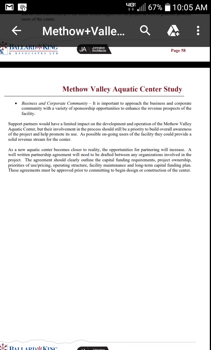 The question I would ask is, what and who's private [capitol] business will invest and partner with the MAC MPD? Whatever business partner that is they could excerpt control over our tax dollars, and as stated above, profits generated by our taxpayer funded recreational facilities will go to them.