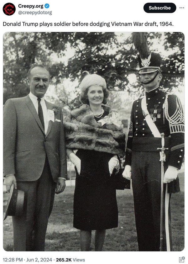 The pictures authentically show the former president wearing the uniform of the New York Military Academy — a private boarding school in Cornwall, New York that Trump attended for high school — at his 1964 graduation ceremony. Trump himself shared this image to his own Facebook page in 2013 with the caption "Myself with mother and father at New York Military Academy. See, I can be very military. High rank!"