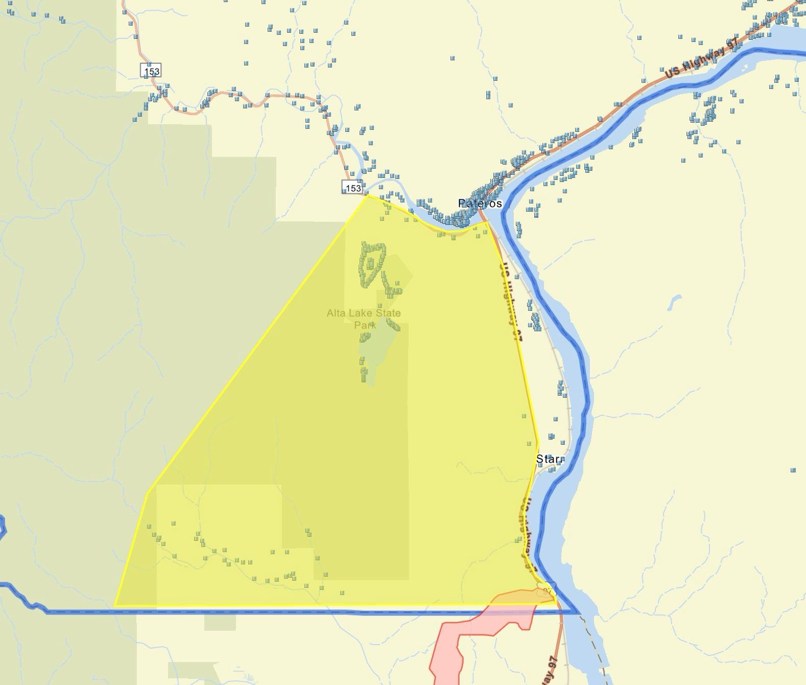 Level 2 (Be Ready) is being issued for the persons north of Wells Dam to State Route 153, Alta Lake east to State Route 97.