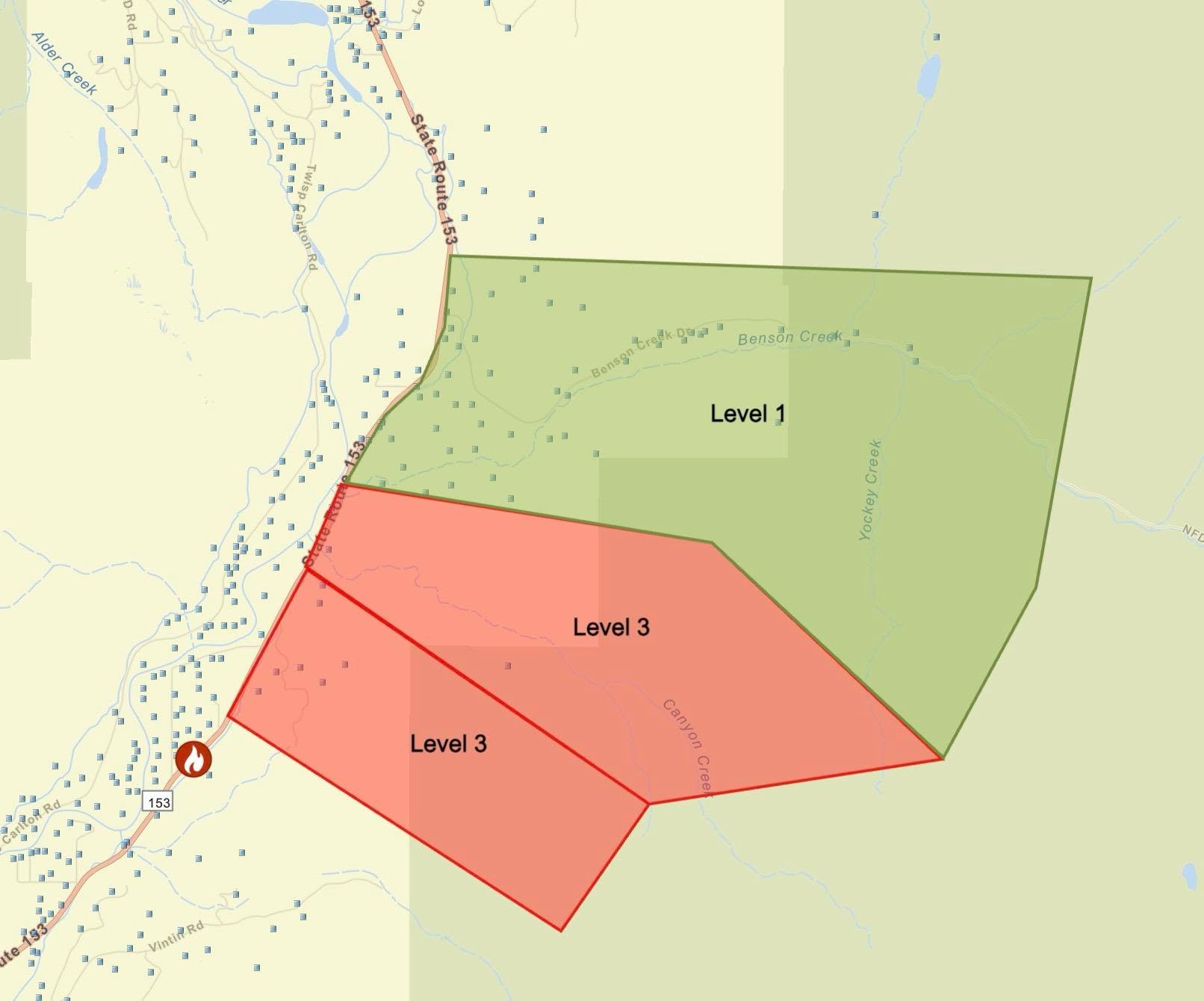 Again, this is a Level 3 immediate Evacuation for a fire burning in the area of State Route 153 and Taylor Road, Carlton/Twisp, WA
