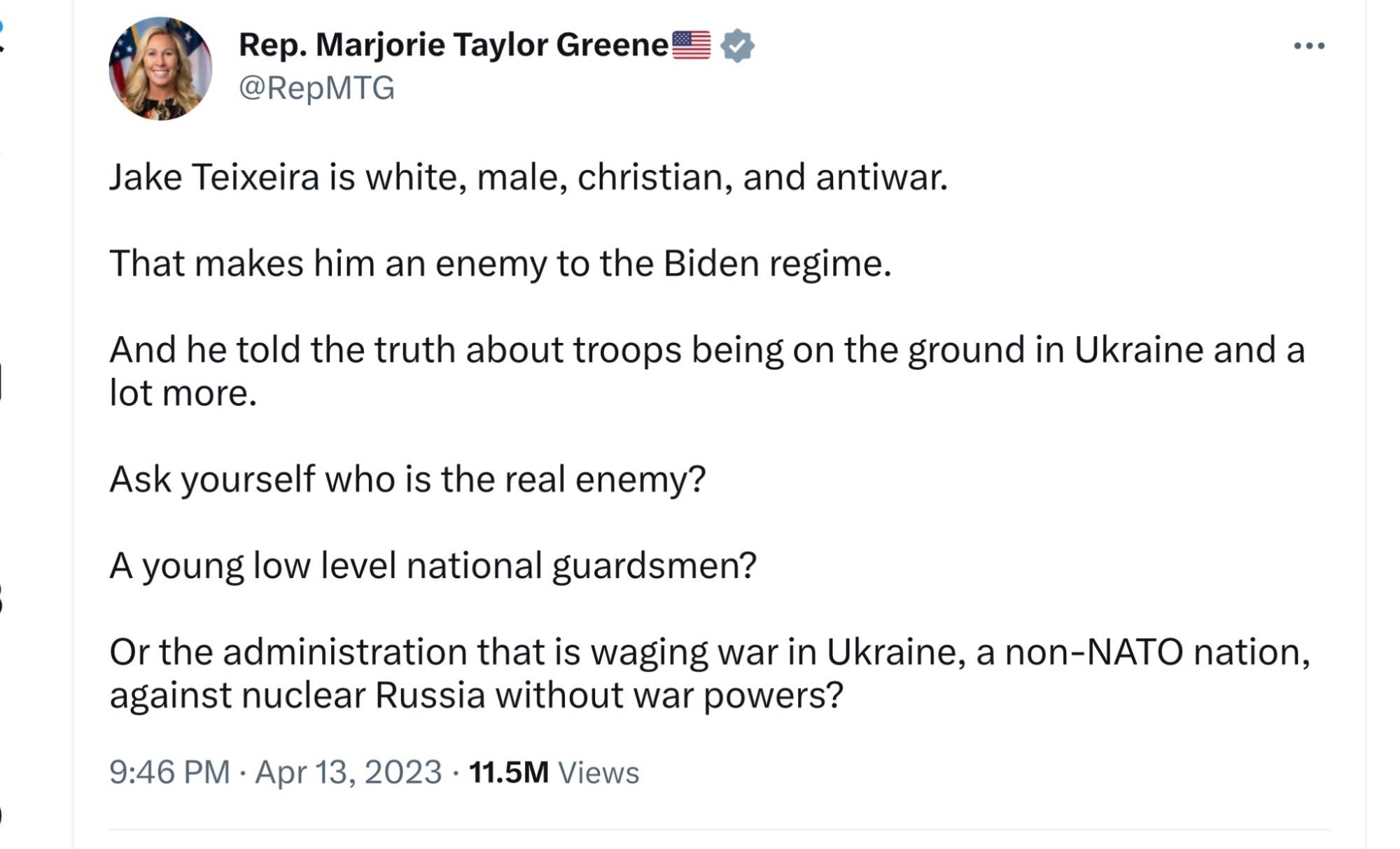 Jack Teixeira, 21 yr old National Guardsman has been charged (x2) under the Espionage Act.