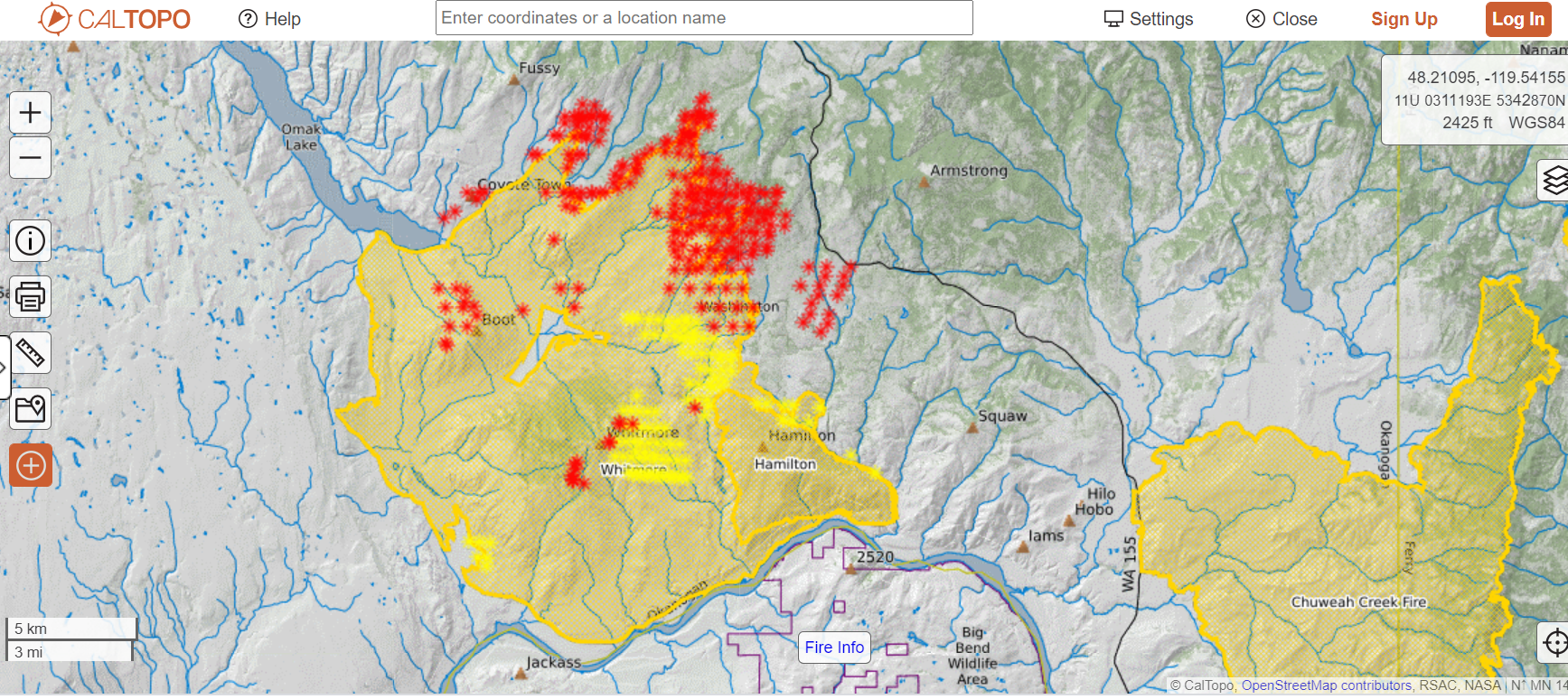 The Omak Stampede is ending today, and heavy traffic is expected this afternoon along the SR155 corridor. Please use extra caution driving, as fire equipment accesses the northern portion of the fire from SR155 and will be entering and exiting side roads.