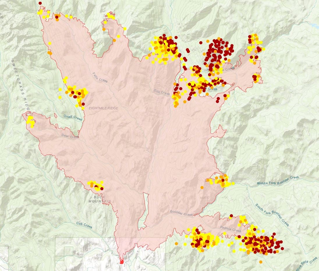 Creek fire in the area of Thompson Ridge to Gobblers knob,