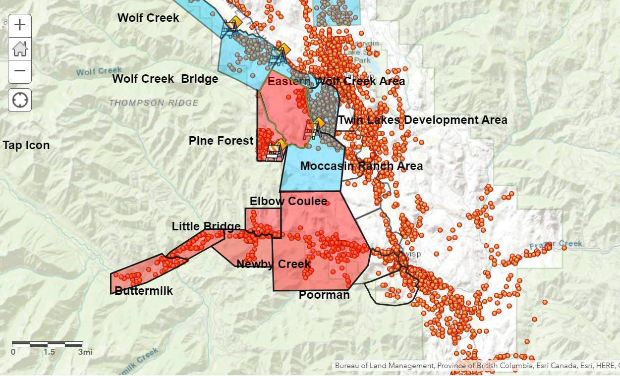 The Following areas remain the same at “Level 3 Evacuate NOW” for the Twisp River Valley areas: