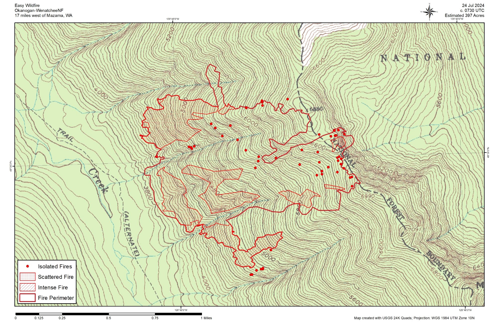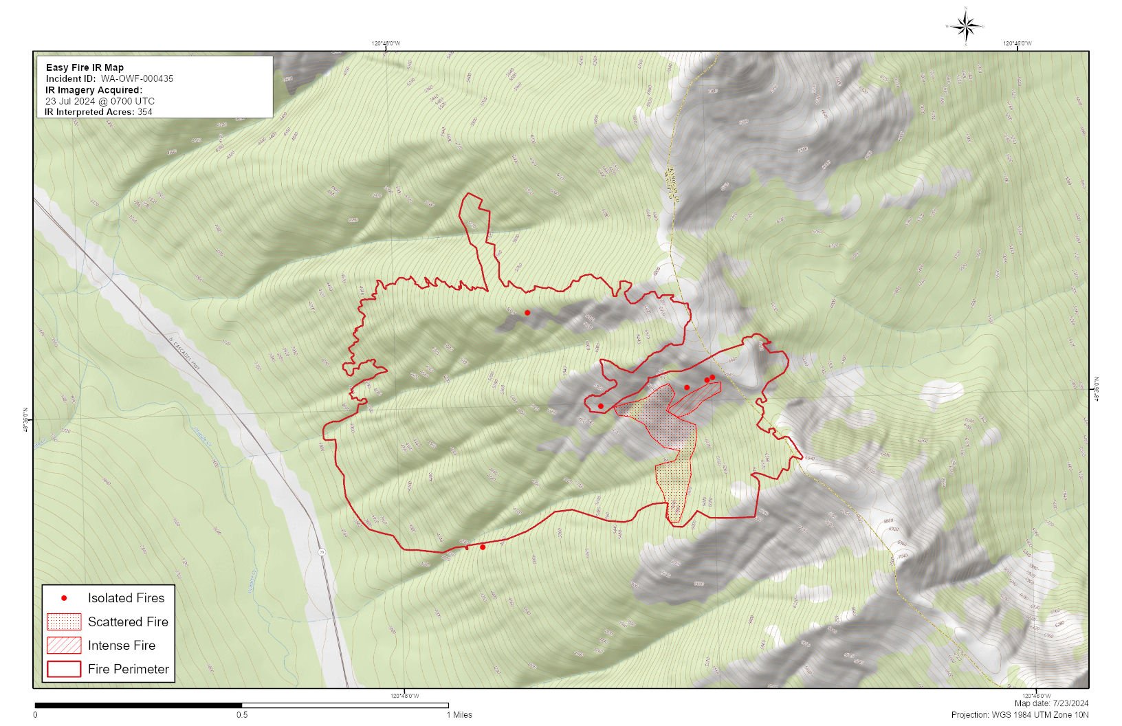 FOREST CLOSURE: The Okanogan-Wenatchee National Forest has closures in place for trails within the fire area: https://bit.ly/EasyFireClosures. Campfires are prohibited. There is a Temporary Flight Restriction (TFR) in place over the fire: https://tfr.faa.gov/save_pages/detail_4_6779.html. Unauthorized drone activity is prohibited under the TFR.