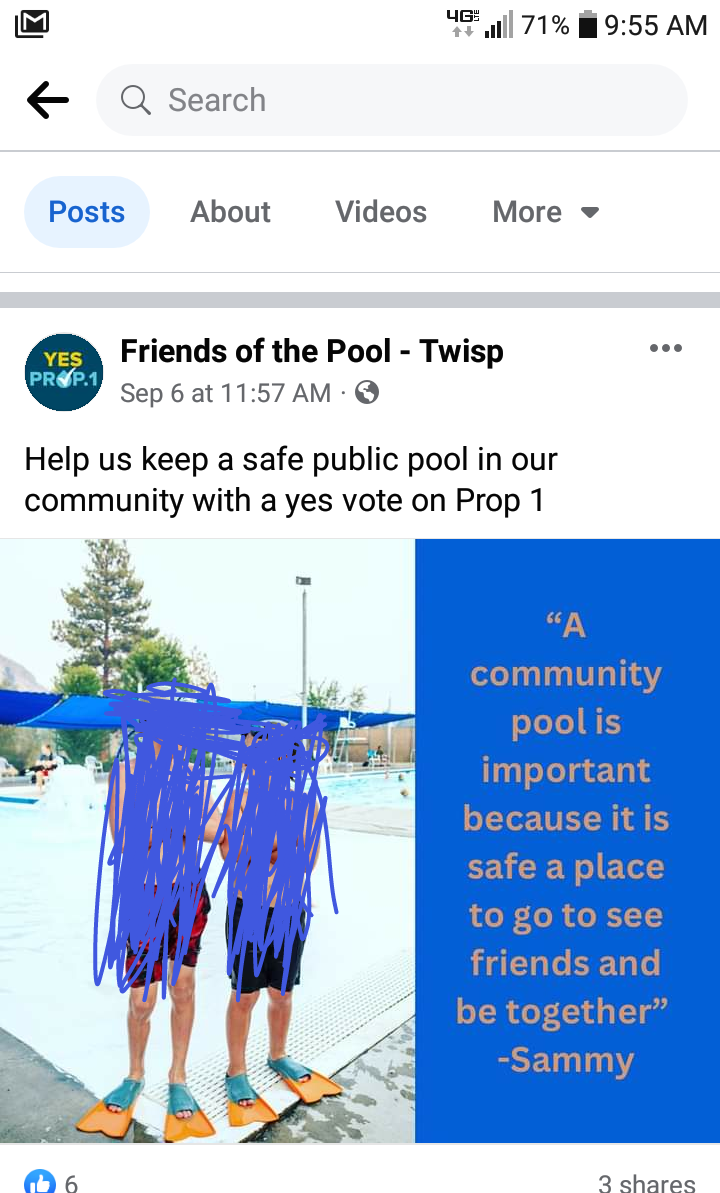 Their ad "Vote for a pool, Vote yes on Proposition 1" is the false statement. There are many other funding methods to build a pool without a permanent Metropolitan Park District. You can vote no and we can still build a pool. One with voter input.