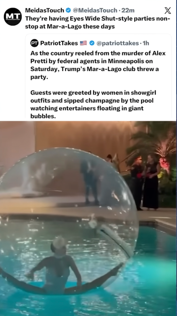 Yes, and by the day the MN protectors are getting better trained, better organized and coverage is getting out globally. Pushback from Conservatives against the ever changing narratives and use of AI generated pictures has forced the Senate work on the funding Bill that comes due this Sat to separate out the ICE/CBP elements so that the rest of funding has a chance of going through. Reps are not good at reading the room now but the room is reading itself very loudly.