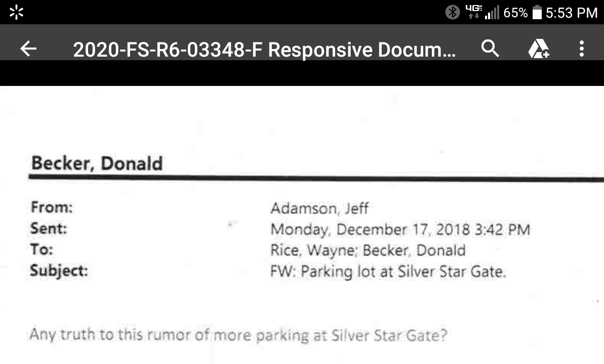 In his email, he asks " any truth to this rumor of more parking at the Silver Star Gate".
